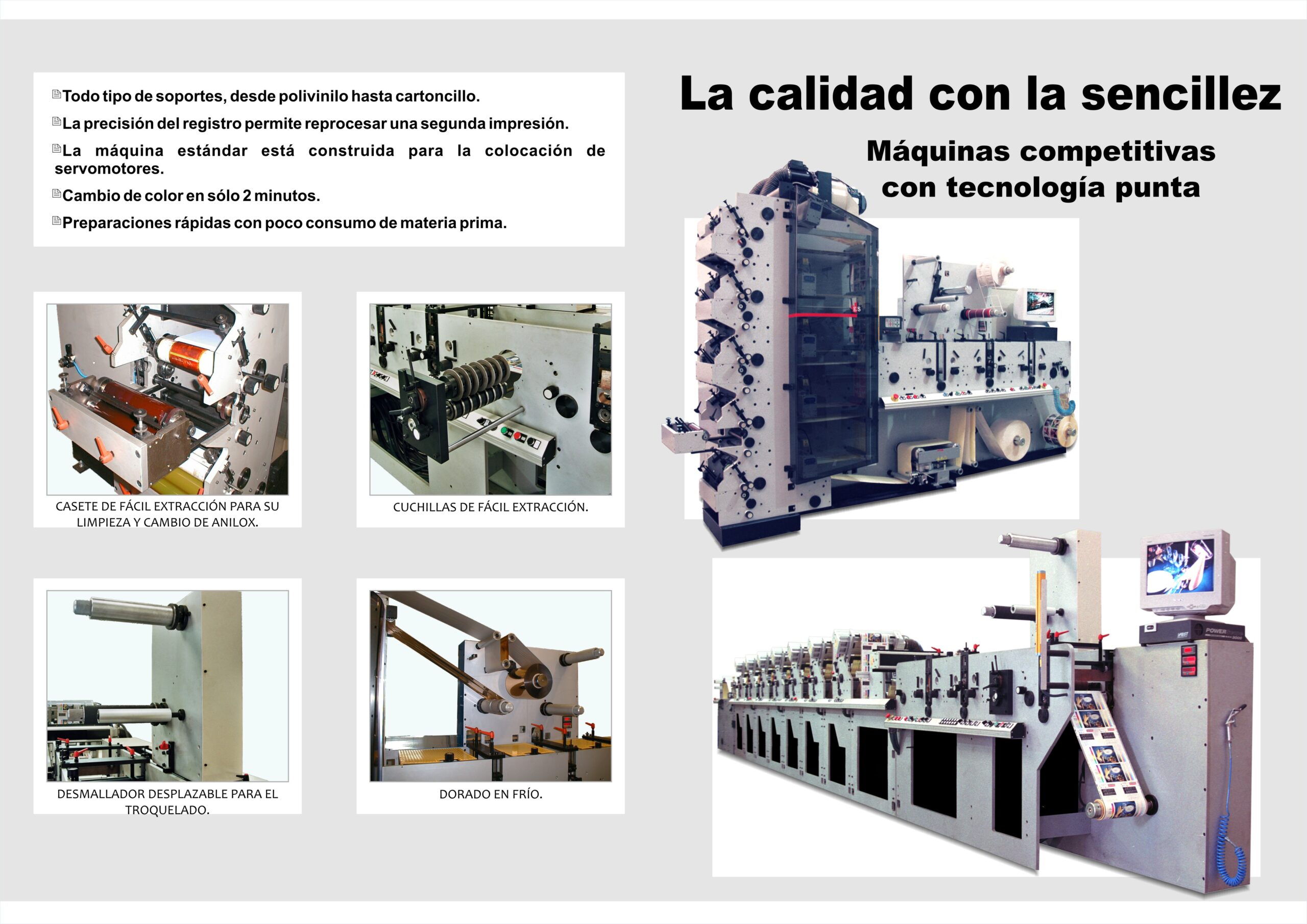 • Impresión de alta definición: gracias al uso de planchas flexibles de última generación, ofrece colores intensos, acabados nítidos y la posibilidad de trabajar con varios colores simultáneamente.